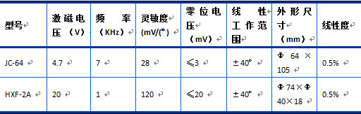 线性旋转变压器输出电压值与角度成比例,角度测量范围±40o~±60o,线性度优于1%。