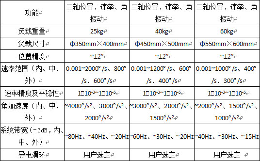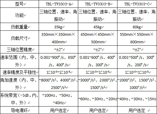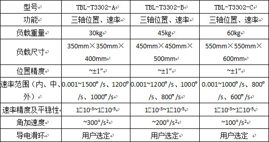 主要指标:1、TBL-T3302型系列三轴转台