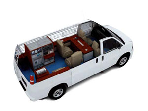 采用中型车搭载动中通系统,能在综合应用功能和机动性能方面实现适当的权衡。提供足够的办公空间和较好的机动性。综合考虑系统应用,通常选用小口径天线(0.9m 以下)。利用旋转抛物面切边设计,如0.8m*0.6m 切边天线,适当减低系统的轮廓。